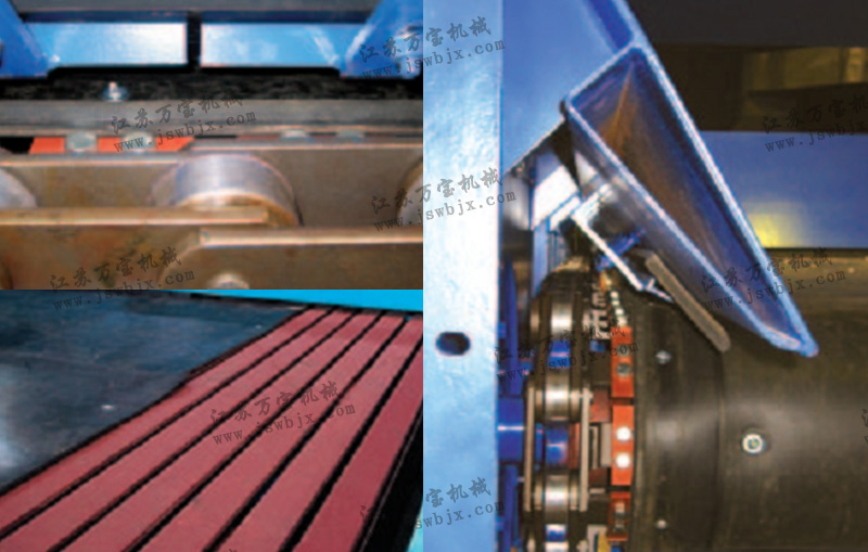該裝置行走機(jī)構(gòu)的行走輪采用輪胎模式,無須布置固定軌道,可移動(dòng)到任意位置,使整個(gè)進(jìn)料裝置移動(dòng)沒有局限性;輸送系統(tǒng)輸送段設(shè)計(jì)為S形,在卸料處設(shè)計(jì)一水平段,用于儲(chǔ)存物料;該段托板或托輥可抗較強(qiáng)的沖擊;可通過變頻調(diào)速調(diào)節(jié)喂料量,達(dá)到穩(wěn)流目的;對(duì)于質(zhì)量較輕的物料,設(shè)計(jì)加長的水平段,滿足幾輛車同時(shí)卸貨;輸送帶下T形鏈板,既能協(xié)助承受一定的重量,消化吸收物料的沖擊力,又能提高輸送帶的使用壽命;當(dāng)輸送有塵物料時(shí),整個(gè)裝置可設(shè)計(jì)為廂式,進(jìn)料口處增加橡膠簾罩,頂部可加設(shè)除塵器;當(dāng)進(jìn)料車后廂較底時(shí)該裝置尾部可加設(shè)過渡軌道,過渡軌道設(shè)計(jì)為折疊式??奢斔投喾N類型材料,其裝卸能力最大能達(dá)到600M3/小時(shí);不需專門的固定設(shè)施,不必?cái)U(kuò)大基礎(chǔ)設(shè)施。當(dāng)不進(jìn)行作業(yè)時(shí),可以遷移所有的設(shè)備,對(duì)現(xiàn)存的港口運(yùn)轉(zhuǎn)影響極小。裝置具有獨(dú)立性,如果交易結(jié)束,可以自由的遷移,甚至轉(zhuǎn)賣。強(qiáng)勁的二手市場有效保障其剩余價(jià)值從而減少投資風(fēng)險(xiǎn);